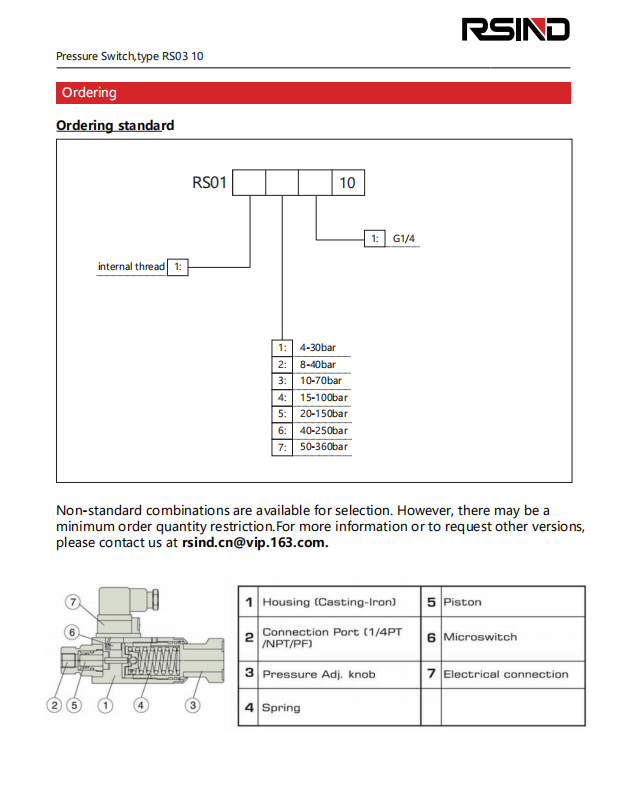 This compact pressure switch adopts a micro switch design, with a service life of up to 1 million times, sensitive response, and can be manually adjusted to achieve normally open and normally closed functions, with a repeatability accuracy of 1%. This pressure relay can cover the range of conventional pressure applications and is suitable for economical hydraulic systems.